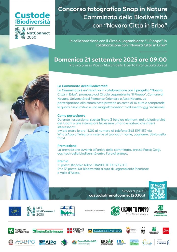 Il concorso si svolgerà domenica 21 settembre 2025, durante la camminata nella natura urbana per l’iniziativa “La Camminata della Biodiversità”, in collaborazione con il progetto “Novara Città in Erba”, promosso dal Circolo Legambiente “Il Pioppo”, Comune di Novara, Università del Piemonte Orientale e Assa Novara.