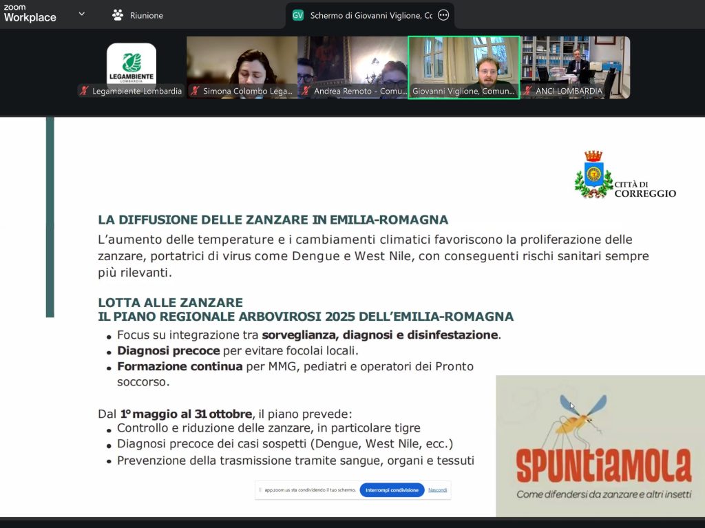 Per l’Emilia-Romagna il Comune di Correggio ha approfondito i metodi e le buone pratiche adottate dall’amministrazione per una gestione integrata delle zanzare, inclusa una campagna di sensibilizzazione sulla lotta alla zanzara tigre, un piano per la fauna minore, e interventi di sfalci differenziati.
