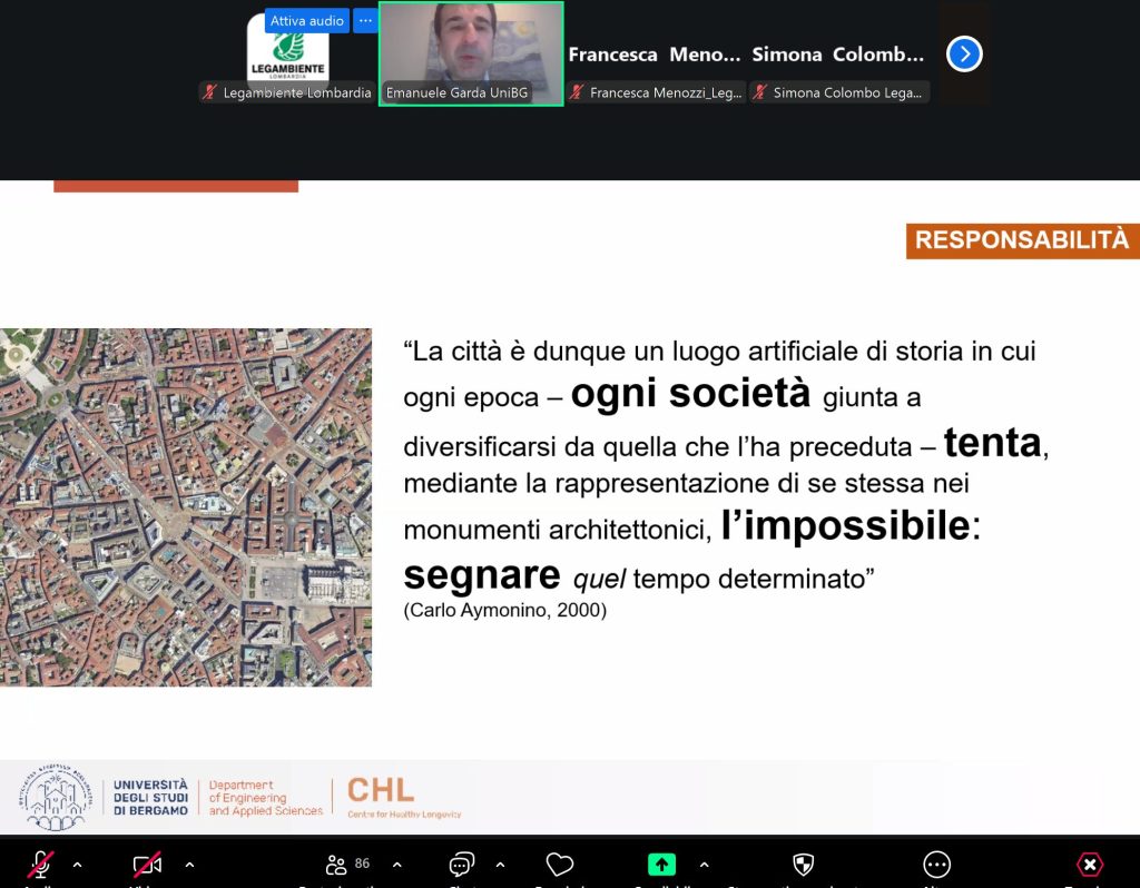 Il 12 febbraio sono stati inquadrati i temi in oggetto attraverso due interventi tecnici/scientifici: Luca Lombroso, Meteorologo AMPRO e divulgatore ambientale, ha affrontato il tema dei cambiamenti climatici e dei relativi effetti a livello locale, mentre Emanuele Garda, Professore Associato in Tecnica e Pianificazione Urbanistica all’Università degli Studi di Bergamo, ha evidenziato il ruolo strategico delle aree verdi all’interno delle città, per la salute e il benessere delle persone, anche mostrando una serie di interventi messi in campo da amministrazioni comunali italiane e straniere per l’incremento degli spazi verdi e della loro accessibilità.